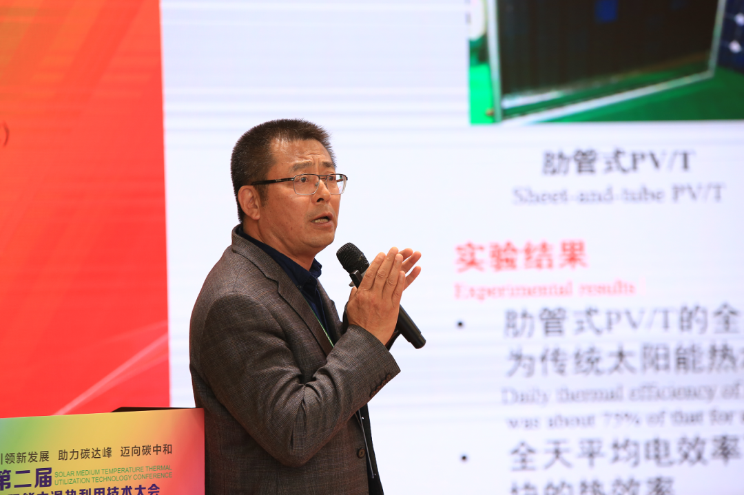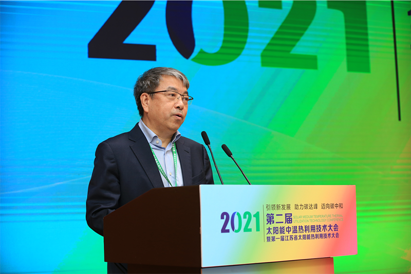全国工程勘察设计大师、中国建筑科学研究院有限公司总工、中国可再生能源学会常务理事/热利用专业委员会主任委员徐伟的《建筑碳中和实现路径》、上海交通大学制冷与低温工程研究所所长/教授王如竹的《热泵技术创新及其在碳中和战略中的作用》、中国科学技术大学系主任/教授季杰的《太阳能光伏光热建筑多效利用》、国家发改委能源研究所副研究员胡润青《双碳目标下的清洁供暖》、北京理工大学教授郑宏飞的《太阳能中温海水淡化应用技术进展》、山东建筑大学教授于洪文《铬铁氧化混合物光热涂层耐腐蚀性研究》、西安建筑科技大学教授刘艳峰的《极端热湿气候区零能耗太阳能建筑环境营造系统》、中国标准化研究院副研究员刘猛《太阳能热利用标准化工作简介》、上海交通大学教授代彦军的《太阳能PVT组件研究及其应用》、北京理工大学教授武钦佩《氢氧化物的化学储热》、国家太阳能热水器质量监督检验中心(北京) 高级工程师张磊的GB/T 6424《平板型太阳能集热器》GB/T 17581《真空管型太阳能集热器》国家标准修订等专题报告,从不同的角度对清洁能源产学研融合进行了深入细致的分析和研究,深度阐述了太阳能中温利用技术的创新发展对推进“碳达峰”、“碳中和”进程的重要意义。