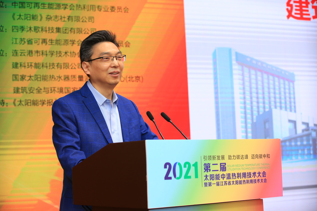 大会由中国可再生能源学会热利用专委会、《太阳能》杂志社有限公司主办,江苏省可再生能源学会光热专业委员会、四季沐歌集团承办,以“引领新发展,助力碳达峰,迈向碳中和”为主题,旨在通过相关专家、学者和技术精英交流学习,深入探讨国内外太阳能热利用最新技术在碳达峰、碳中和中的作用和贡献,践行“30·60”目标,落实履行减碳责任。