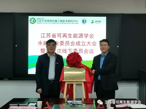 2021年10月25日上午,江苏省可再生能源学会水能专业委员会成立大会在江苏大学国家水泵及系统工程技术研究中心成功举行。江苏大学党委书记袁寿其、江苏省可再生能源学会理事长王军、副理事长何志霞和余雷、江苏大学流体机械工程技术研究中心主任袁建平及水能专委会全体成员参加会议。