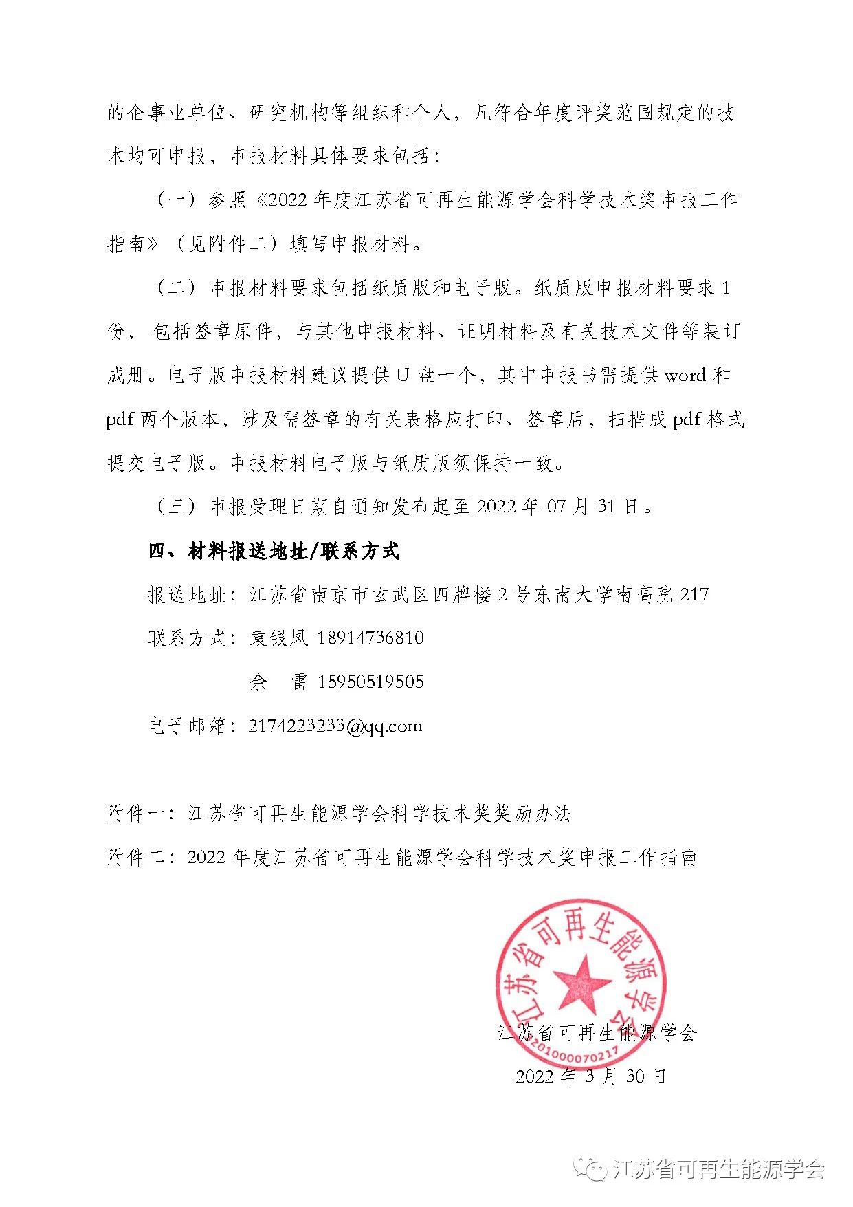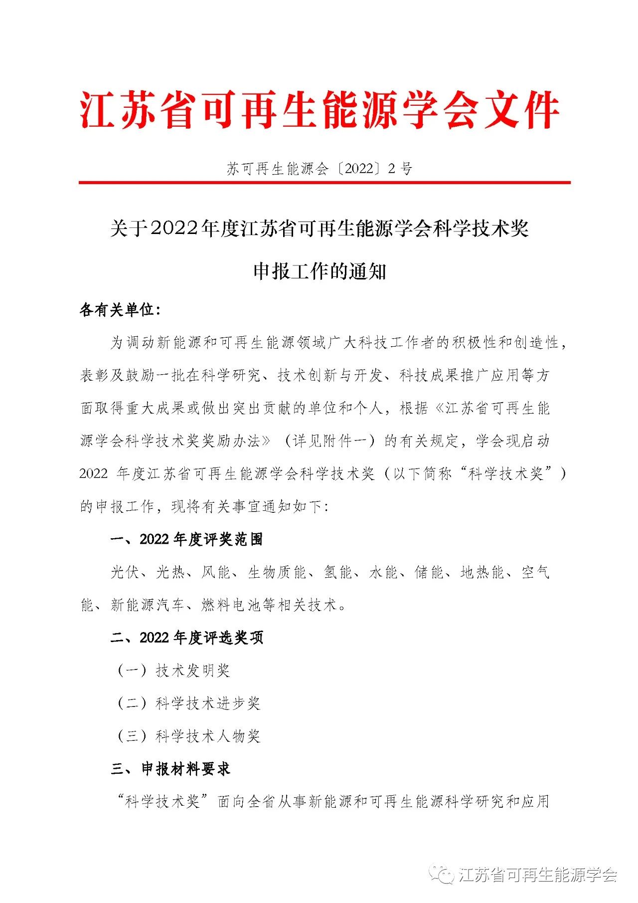 关于2022年度江苏省可再生能源学会科学技术奖申报工作的通知