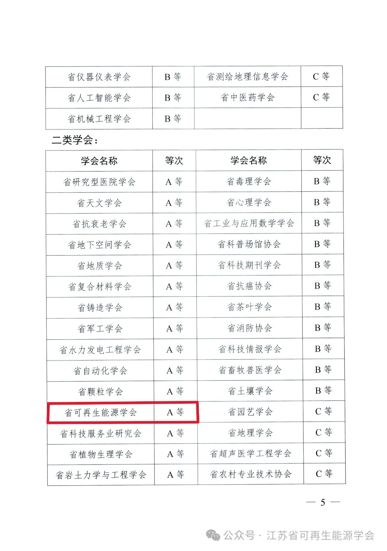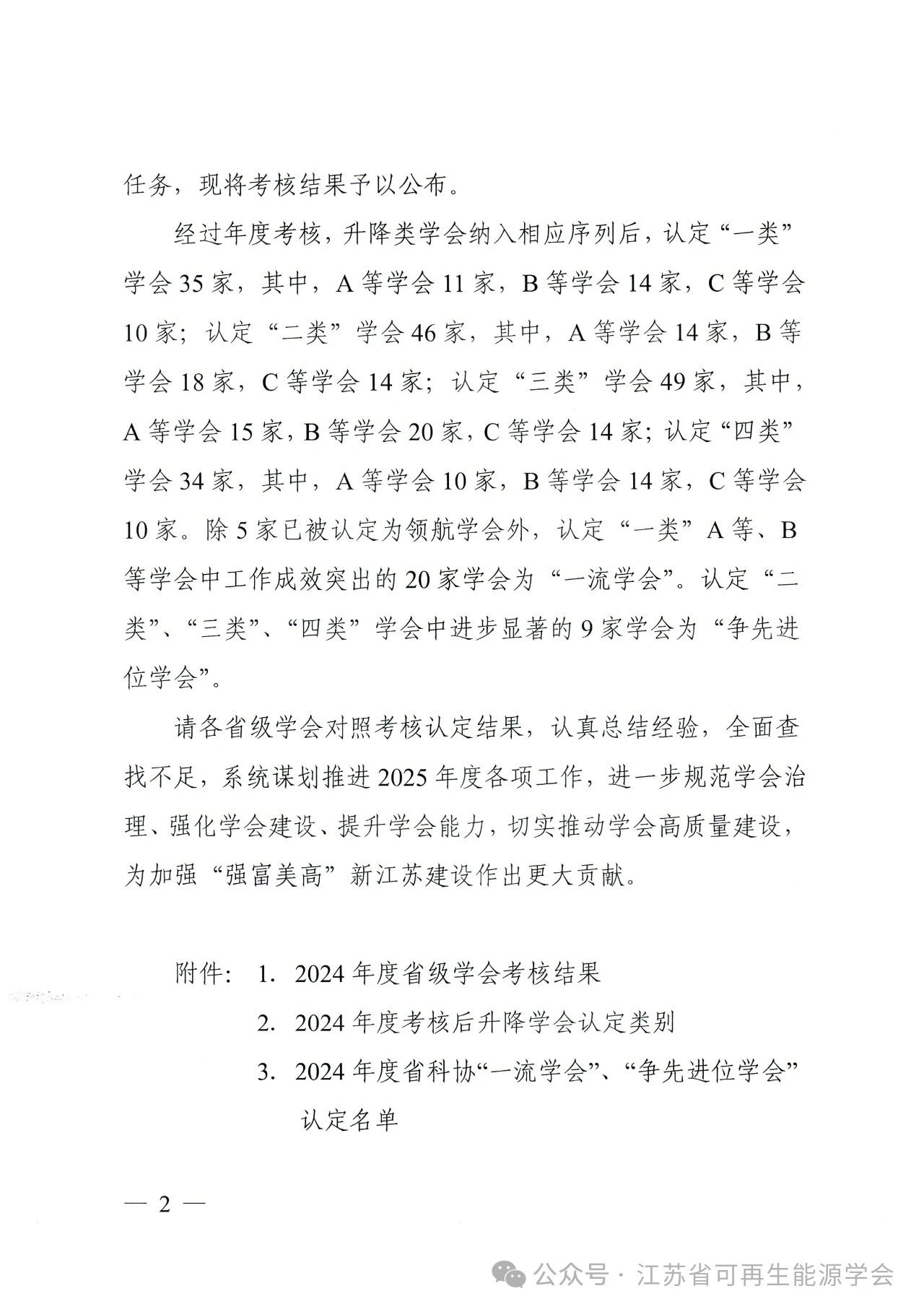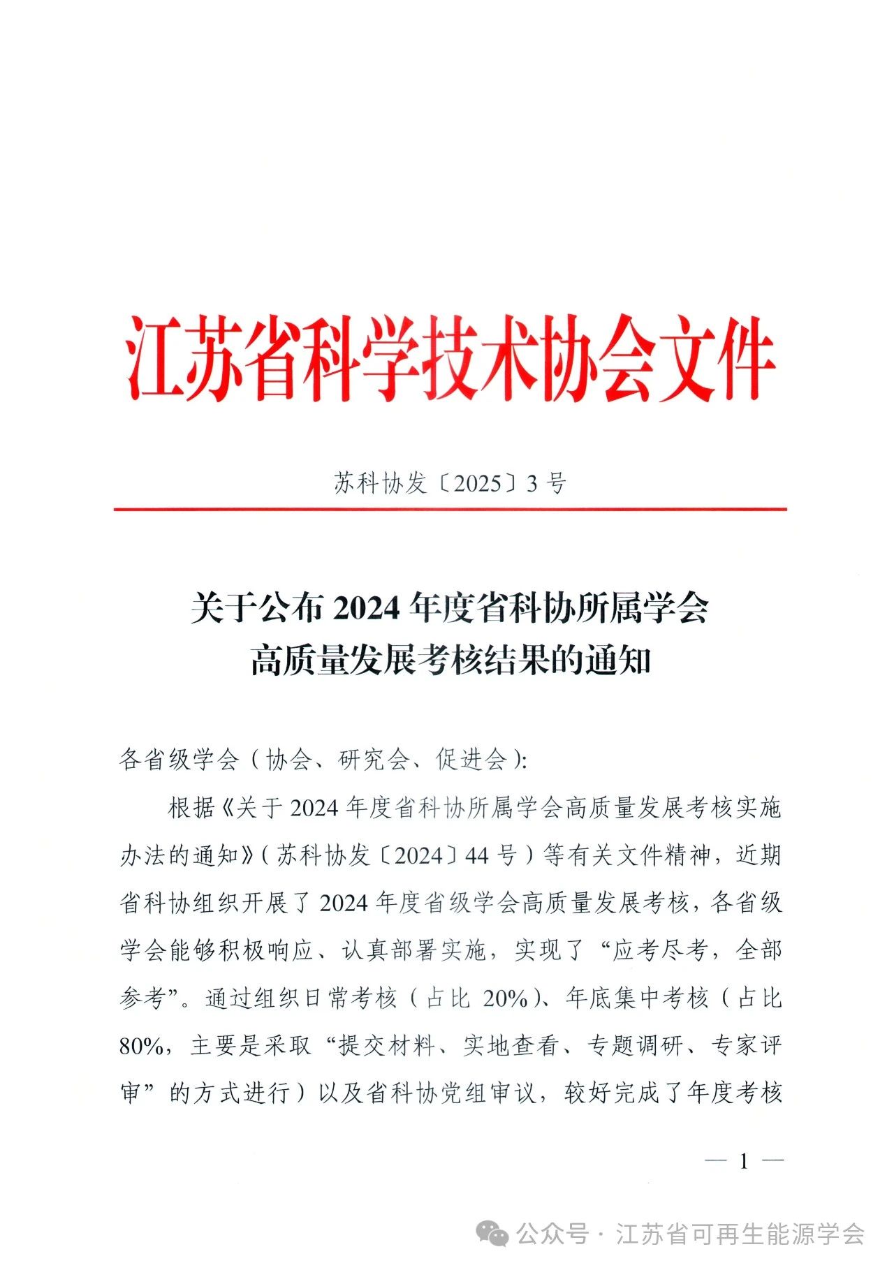 近日,根据江苏省科协公布关于《公布2024年度省科协所属学会高质量发展考核结果的通知》,江苏省可再生能源学会顺利通过省科协的验收考核,获得高质量考核“二类”A等。