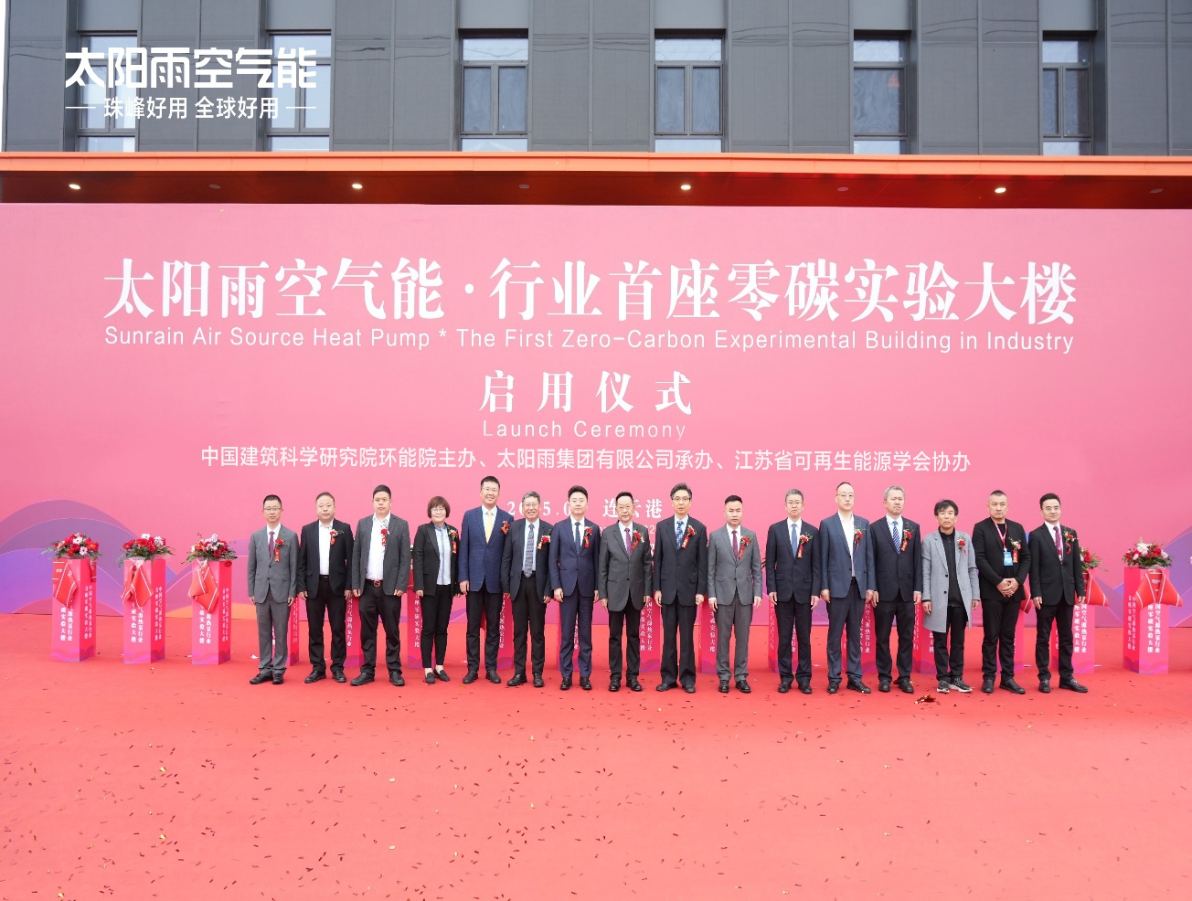 现场隆重举行太阳雨空气能·行业首座零碳实验大楼启用仪式。该大楼投资超2亿元,规划建设40个行业尖端实验室。同时该大楼通过外墙BIPV+屋顶光伏+储能系统(ESS)以及空气能热泵、地源热泵以及蓄热蓄冷系统满足大楼冷、热、电的用能需求,是太阳雨“国家绿色工厂”的重要组成部分,在实践中塑造了零碳建筑和绿色制造园区的近零排放典范。