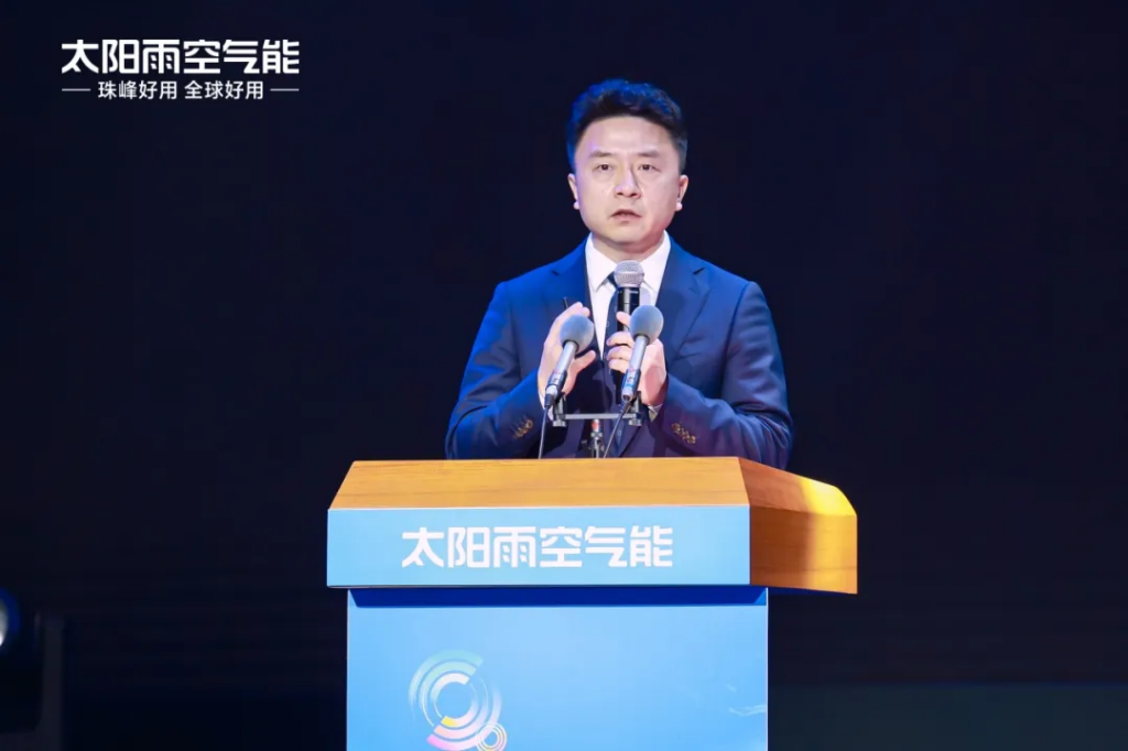 中国节能协会热泵专委会副理事长、太阳雨集团总裁陈荣华带来《走向碳中和之路,太阳雨的实践与探索》主题演讲。陈总强调,技术创新是推动行业升级的核心引擎,太阳雨空气能热泵已实现从实验室到珠峰极境的全面验证,未来太阳雨将持续以太阳能核心再造、空气能再造核心以及光储充热一体化尖端科技赋能低碳转型,持续打造零碳家庭、零碳建筑、零碳社区示范样板,为全球碳中和目标提供中国智慧与中国方案。